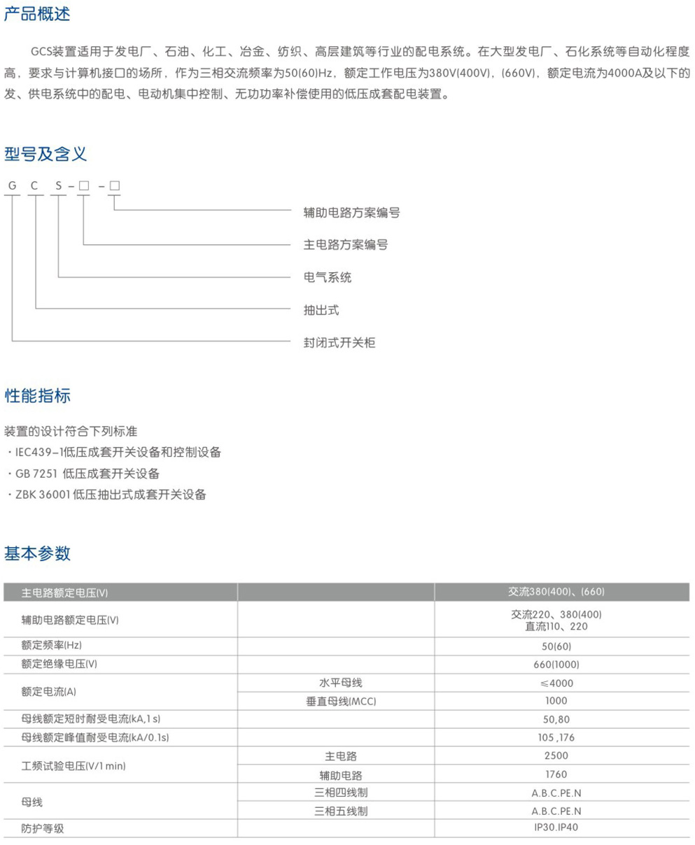 GCS低压抽出式开关柜